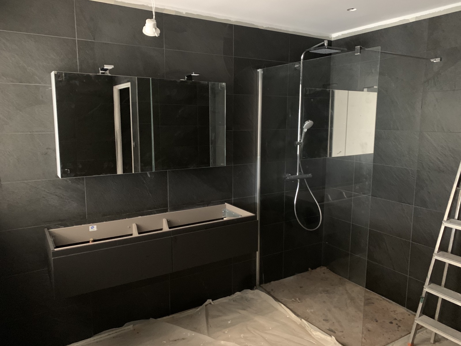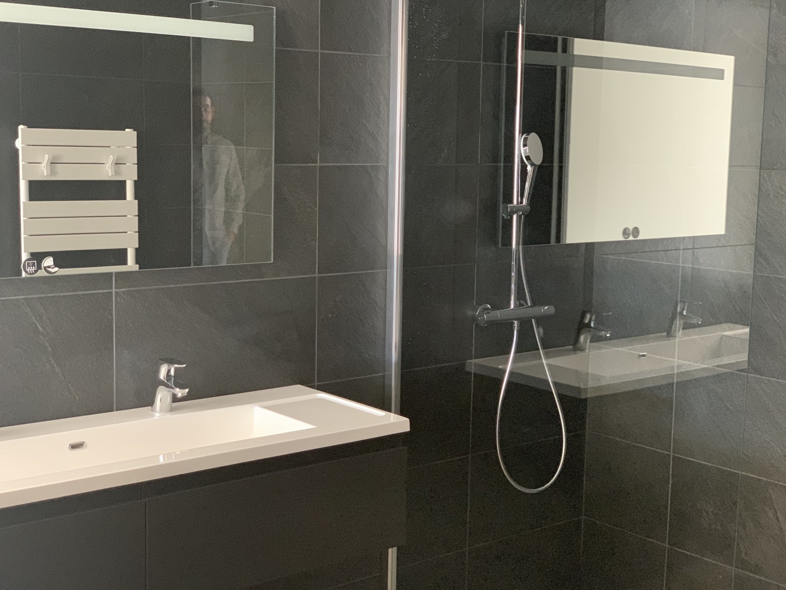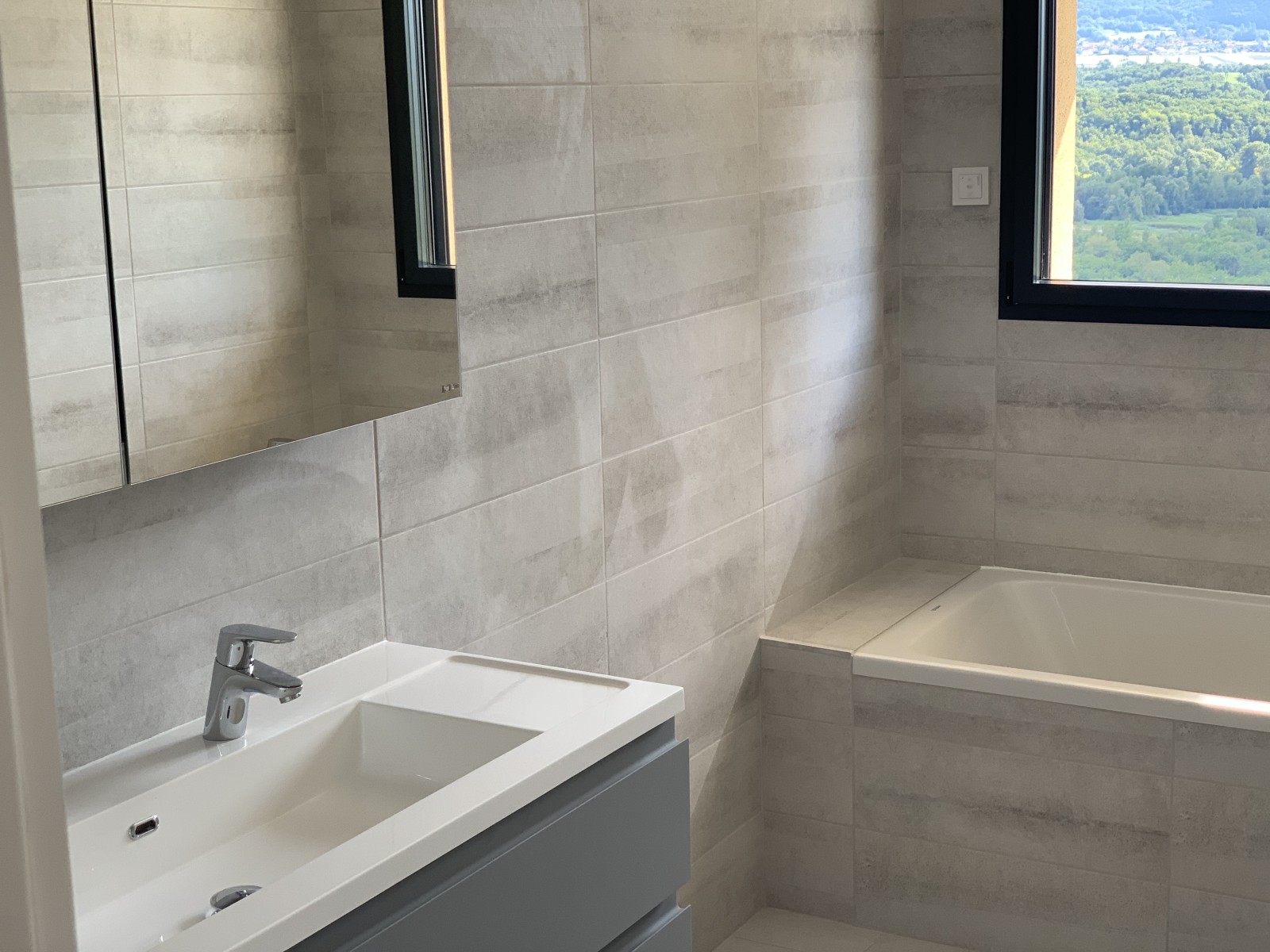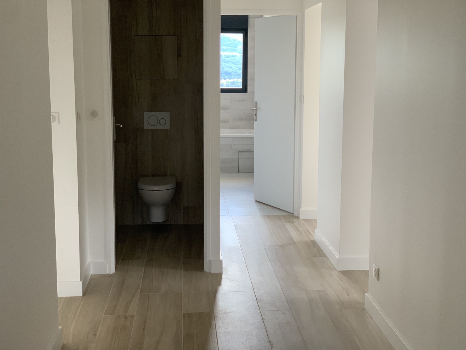 Plomberie & Sanitaires : Deux salles de bains entièrement équipées (meubles Sanijura, mitigeurs Hansgrohe, receveurs Silex, WC suspendus Geberit), sèche-serviette, adoucisseur prévu, reprise complète des réseaux. Montant : 17 969 € TTC.