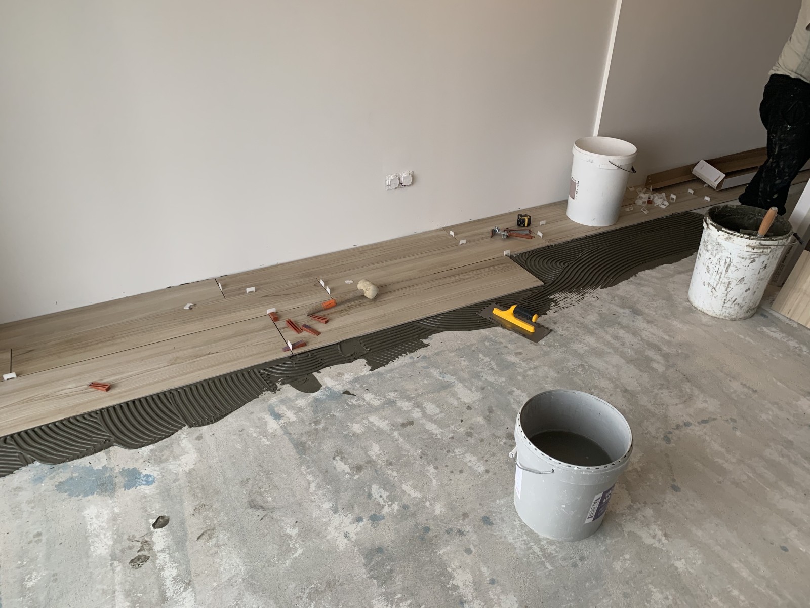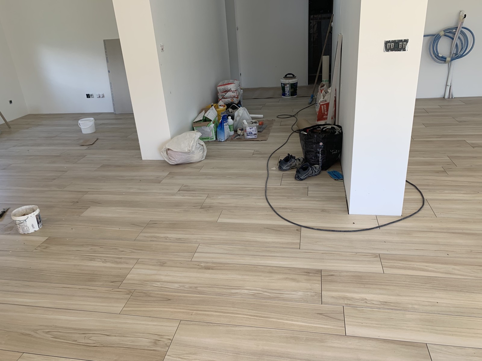 Carrelage : Pose de carrelage 60x20, 60x30, 45x45 et 20x60, fourniture incluse. Mise en œuvre sur chape fluide anhydrite avec isolant polyuréthane TMS MF SI de 100 mm. Montant : 9 864 € TTC.