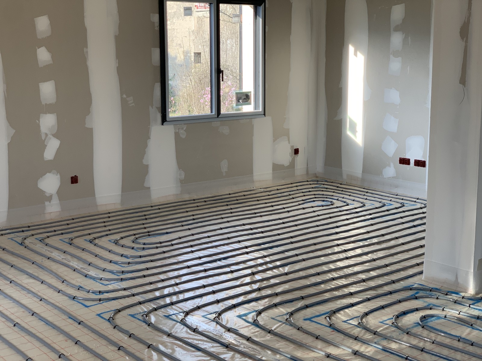 Pompe à chaleur : Fourniture et pose d’une pompe à chaleur DAIKIN ALTHERMA basse température 13kW avec plancher chauffant pour 120 m². Isolation thermique par polystyrène Maxissimo® 80 mm et distribution en PER multicouches. Montant : 12 096 € TTC (PAC seule) – Total lot chauffage/plomberie : 32 969 € TTC.