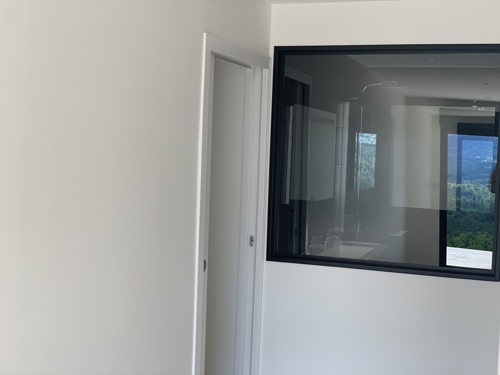 Verrière : Fourniture et incorporation d’un châssis fixe en acier type verrière d’atelier. Montant inclus dans les lots plâtrerie/menuiserie.