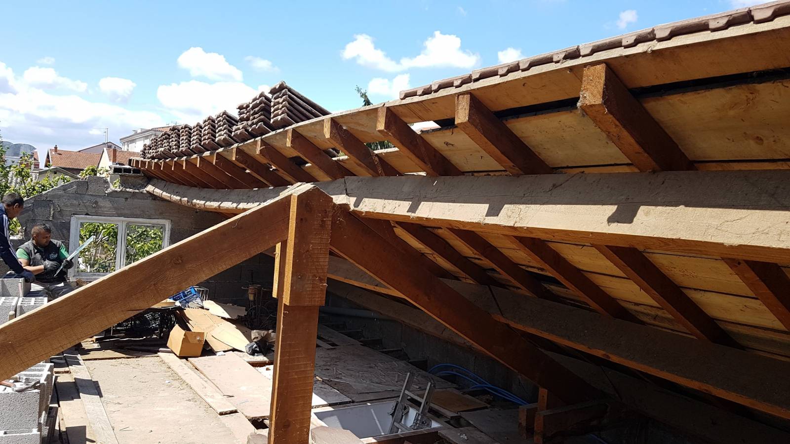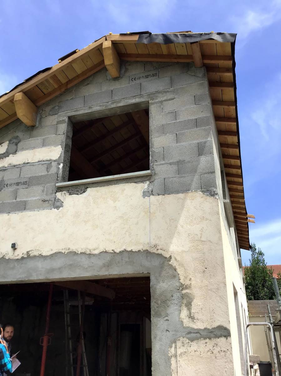 Afin de gagner en hauteur d'une maison très ancienne, une surélévation a été réalisée avec l'aide de notre charpentier et d'un ingénieur structure.