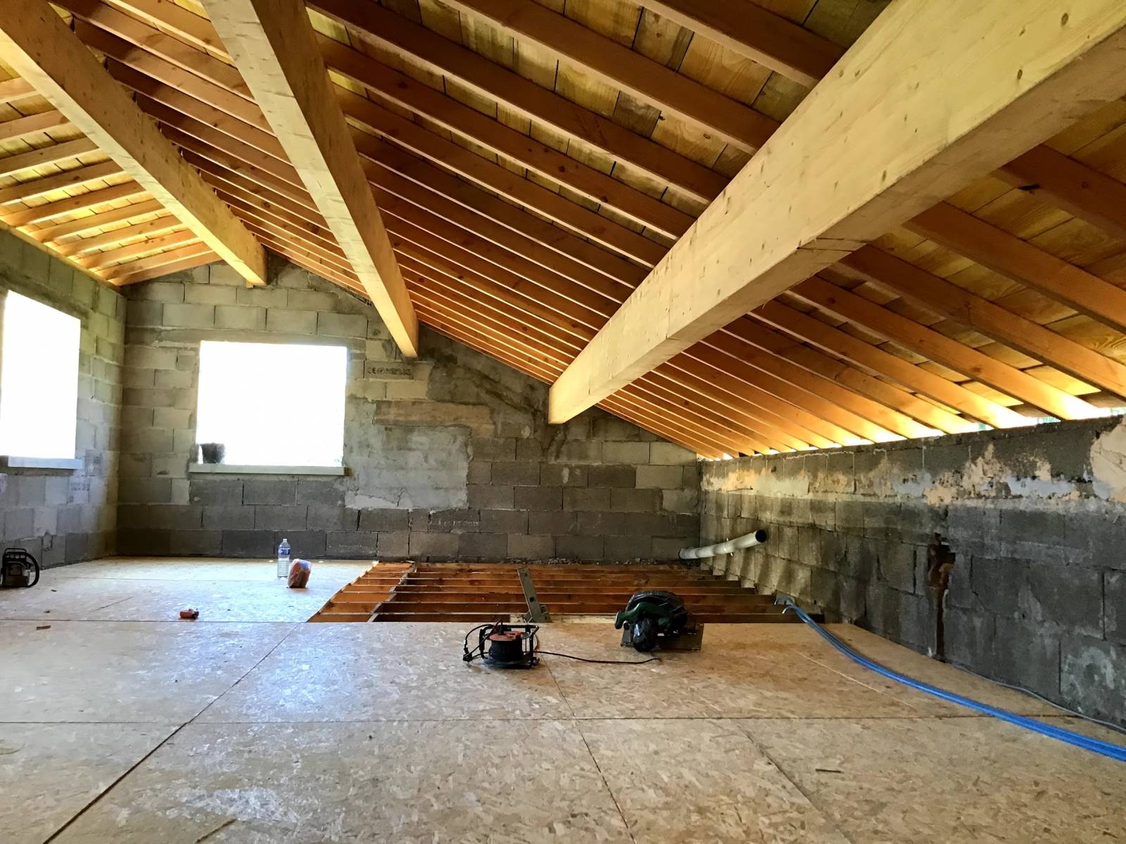 Une étude de faisabilité et une nouvelle conception a été faite pour enlever toute la charpente ainsi que le plafond.