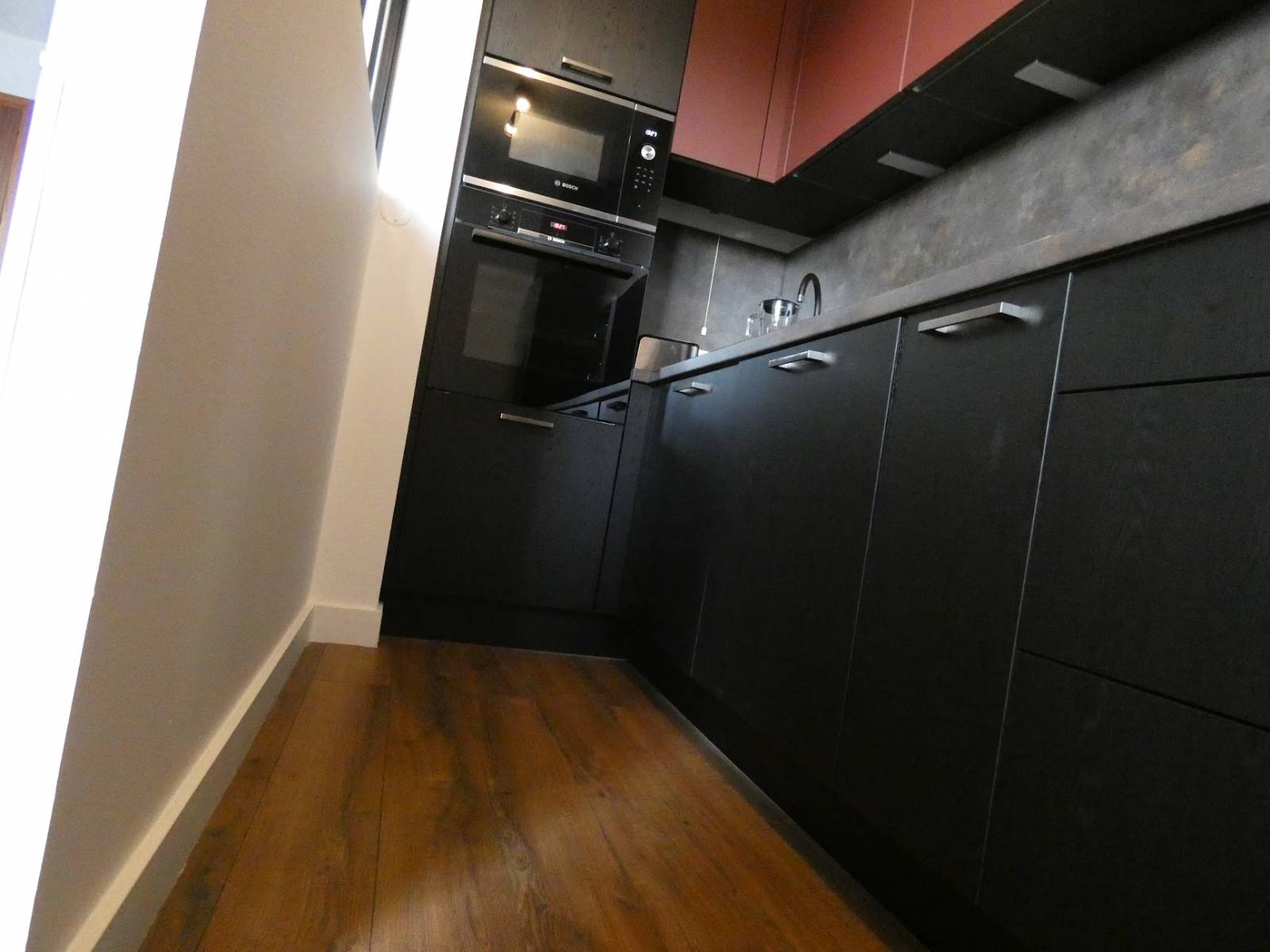 Pour cette rénovation d’appartement dans le Pays De Gex, nous avons installé une verrière au-dessus de ce mur pour séparer la cuisine du salon.