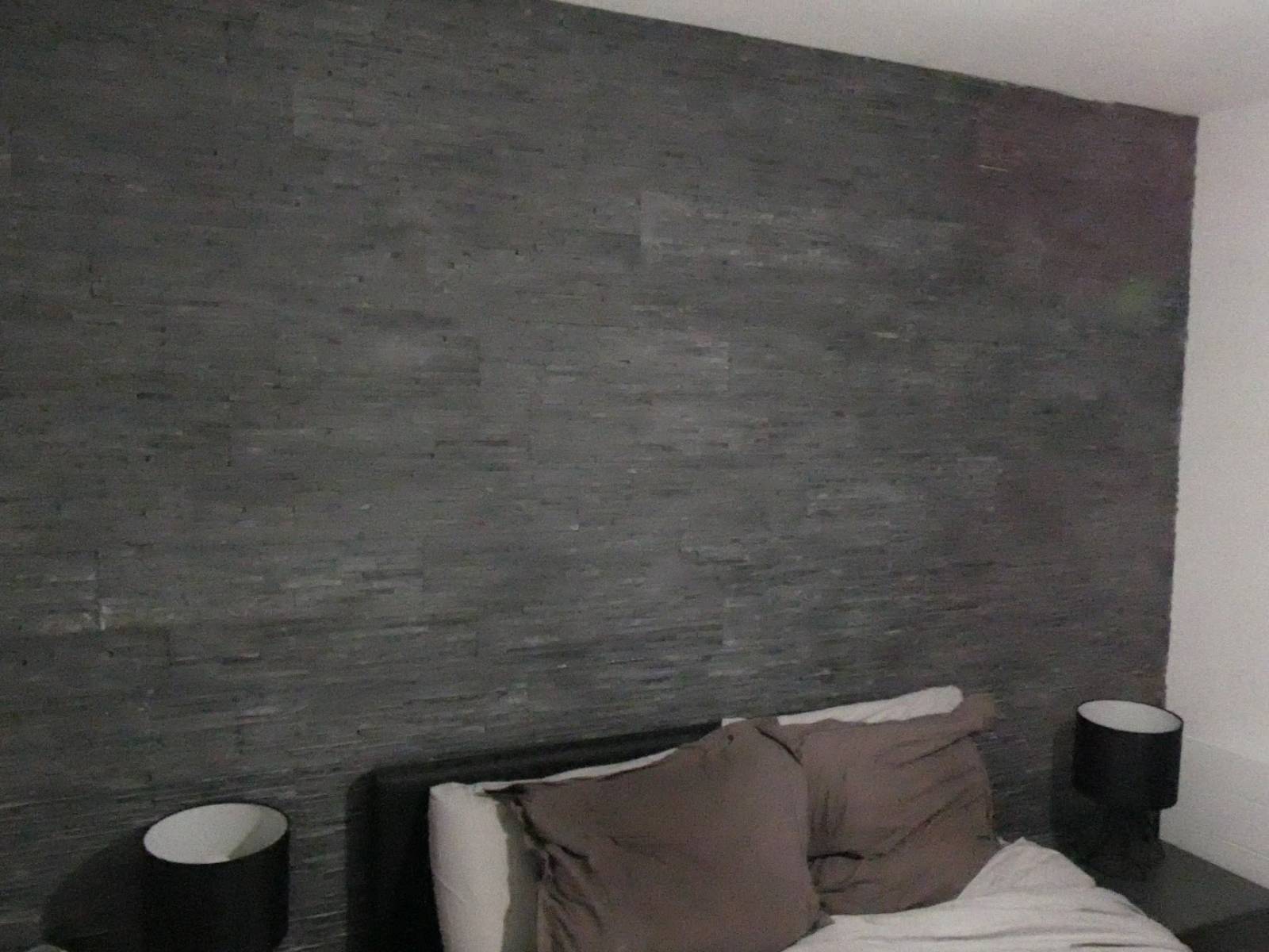 Un revêtement mural composé de pierres naturelles a été également posé dans la chambre pour donner un style brut contemporain dans cette magnifique région des Alpes.