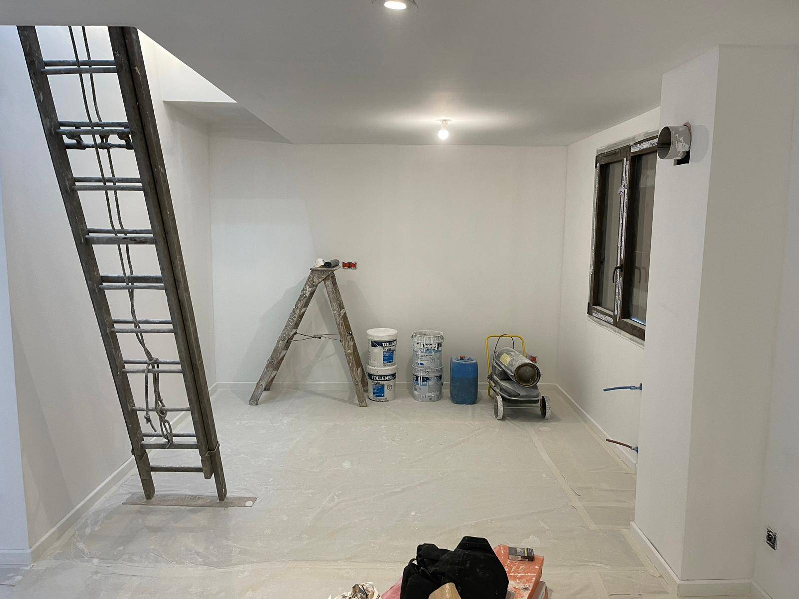 Nous procédons ensuite à la mise en peinture des murs et plafonds et des portes.