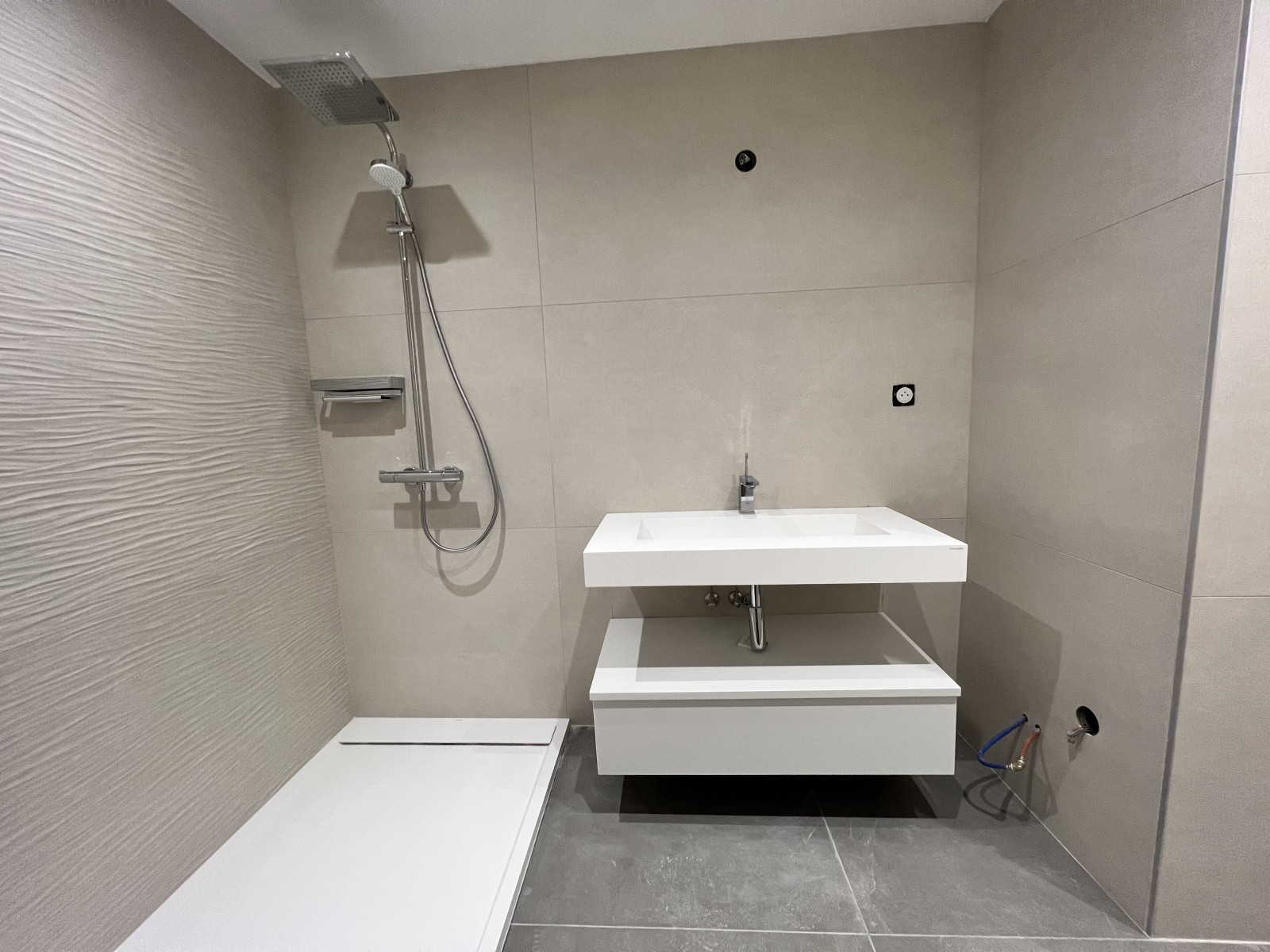 - Carrelage & Faïence : Faïence toute hauteur dans la salle de bain, carrelage grand format SHEER 90x90 et REFIN 60x120. Total HT : 7 592 €